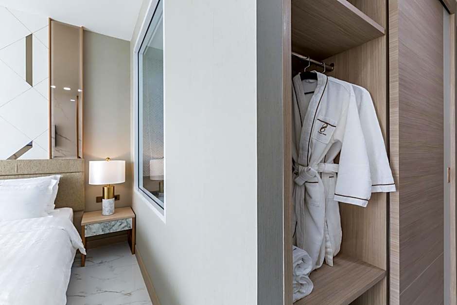 Guests will have a special experience as this double room provides a hot tub. Offering free toiletries and bathrobes, this double room includes a private bathroom with a bath, a shower and a hairdryer. The air-conditioned double room offers a flat-screen TV with cable channels, soundproof walls, a mini-bar, a tea and coffee maker as well as city views. The unit offers 1 bed.